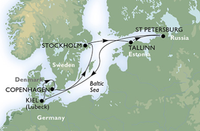 Kiel- Copenhaga- Stockholm- Tallinn- St Petersburg- Kiel