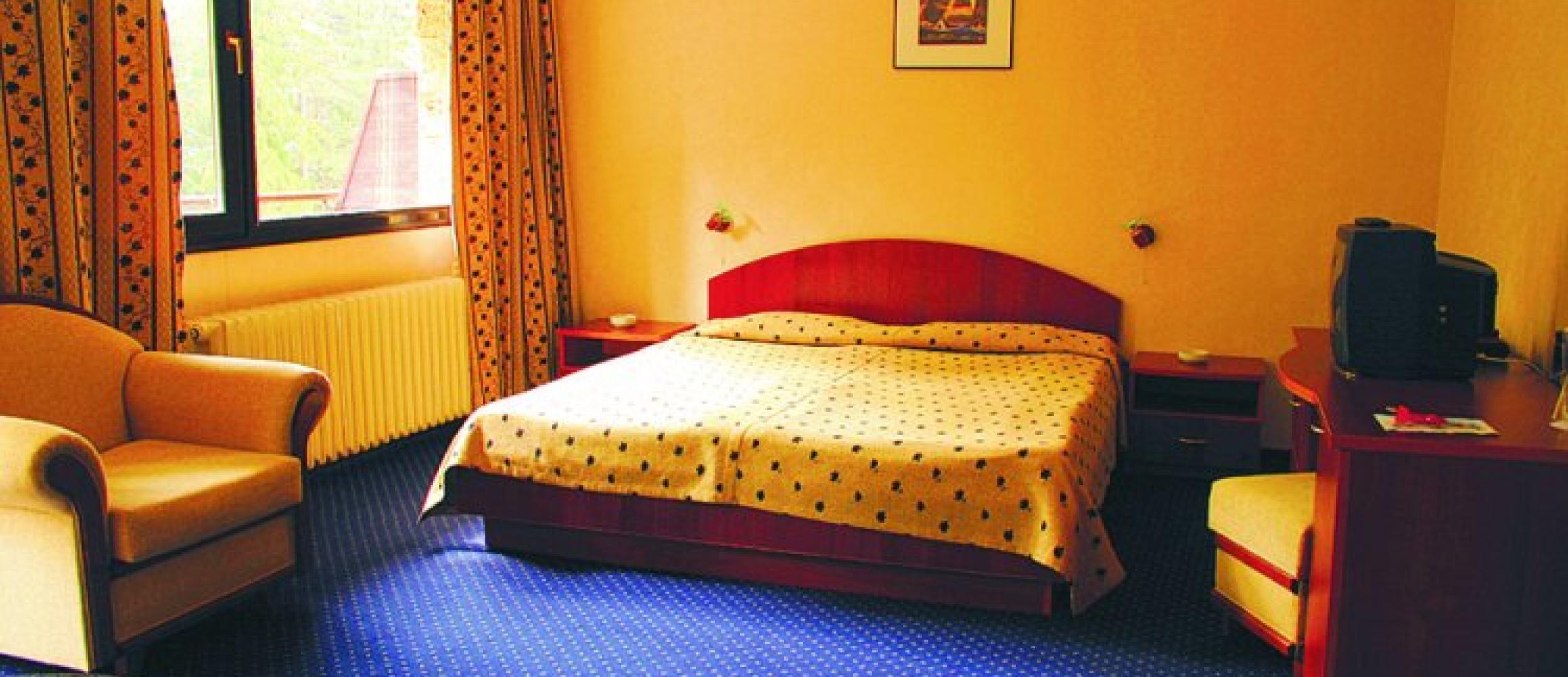 Hotelul dispune de 225 locuri. Cazarea este disponibilă în 20 camere twin/ duble, 20 camere triple, 45 duble de lux ,1 cameră single, 13 apartamente și 4 apartamente de lux cu șemineu.