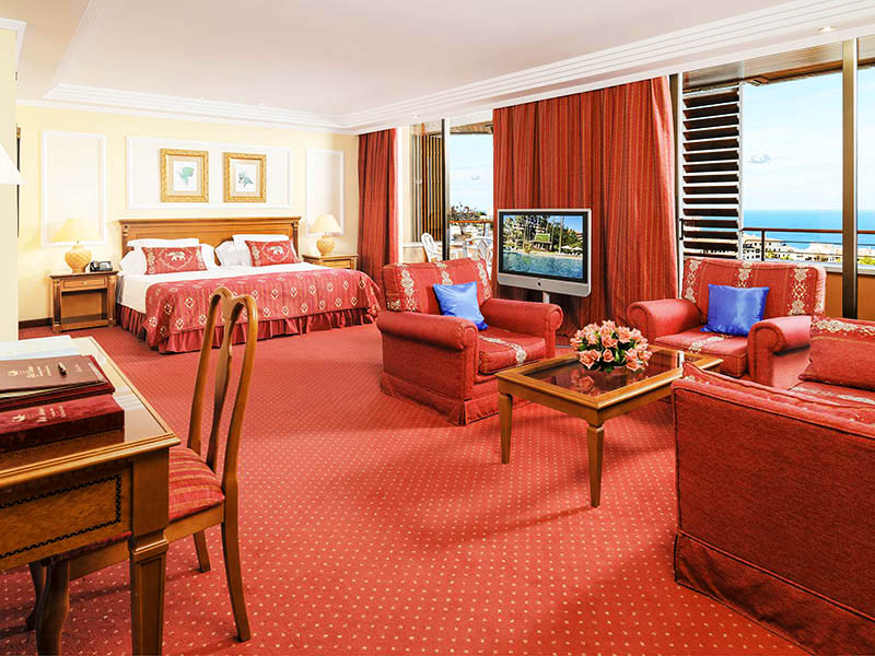 - Suite Real (una) cu o suprafata totala de 420 m², dotata cu terasa foarte spatioasa care inconjoara toata suita, hall, jacuzzi interior privat, 3 dormitoare (aproximativ 41 m² fiecare),