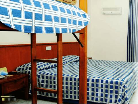 Camerele Family cu paturi supra-etajate au 25 mp, baie cu dus si uscator de par, aer conditionat (24 de ore), satelit tv, minibar (contra cost), telefon direct, seif (contra cost), balcon/terasa, capacitate 2 adulti + 2 copii sau 3 adulti+1copil maxim.
