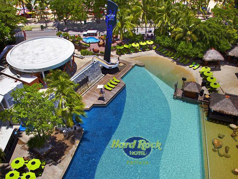 Hotelul Hard Rock este situat în centrul orașului Pattaya. Hotelul este într-un stil american și are o reputație ca lider printre hoteluri cu divertisment. Acesta oferă camere decorate cu tema de rock and roll, dispune de un centru spa și are cea mai mare plajă artificială cu nisip. La fel interiorul este decorat cu fotografi ale superstarurilor. Personalul de la Hard Rock organizează diverse jocuri și activități, așa este mai ușor să vă faceți cunoștință cu alți oaspeți.