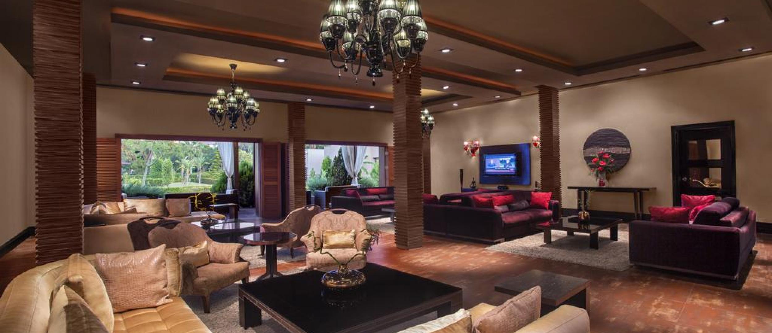 Pachetul turistic include cazare in Vile aflate chiar la piscina. Lake Villa - sunt in numar de 26, au o suprafata de 65 mp, formate din 2 dormitoare, 1 living. Camera parintilor dispune de 1 pat matrimonial si baie cu cada, camera pentru copii dispune de 2 paturi single si baie cu WC si dus. Minibar full, cos cu fructe zilnic, vin si fistic zilnic, prosoape la piscina, halat de baie si papauci zilnic, 50% discount la calcatorie si spalatorie.
