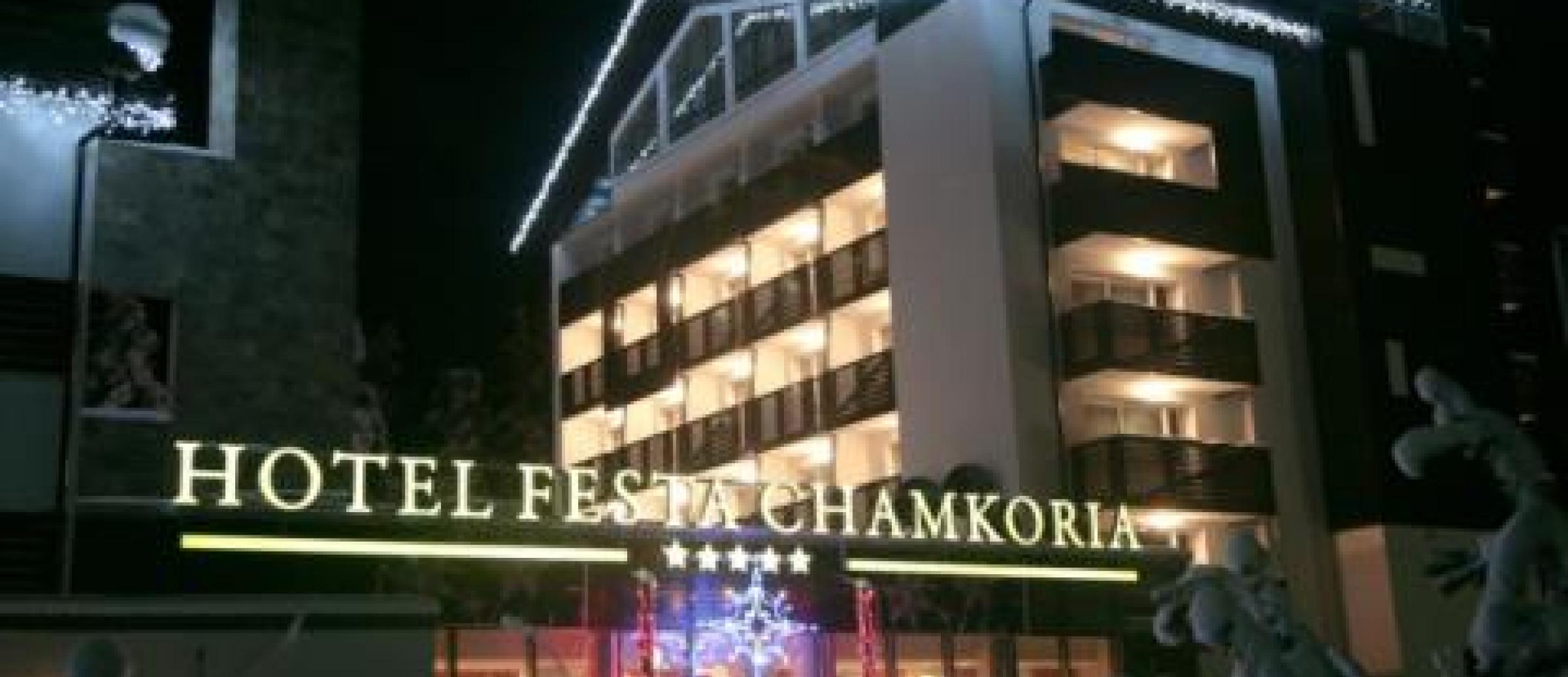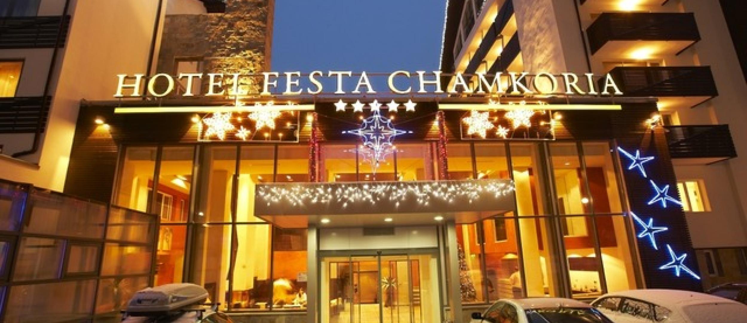Расположен в 70 км от города Софии, в 125 км от г. Пловдив, в 1200 м от начальной станции подъемника. Есть бесплатный shuttle bus до начальной станции подъемника. Четырехзвездочный отель Festa Chamkoria располагается в городе Боровец. Неподалеку находится горнолыжный курорт Маловица. От отеля до международного аэропорта София вы сможете доехать за 55 минут.