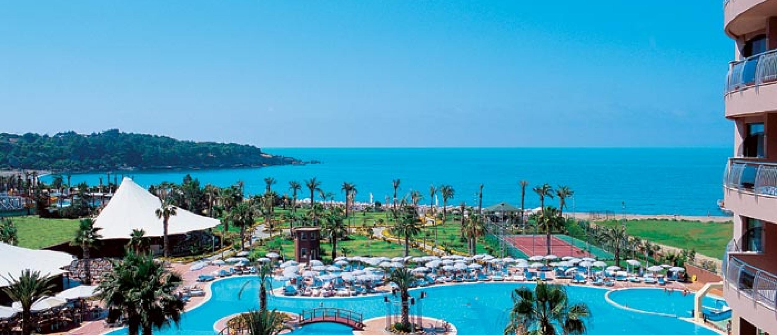 Kirman Hotels Arycanda DeLuxe Alanya face parte din lantul Kirman Group (Kirman Hotels) e situat la 90 km de aeroportul Antalya. Aricanda este situat chiar langa plaja sa privata cu nisip, care a primit blue Flag.